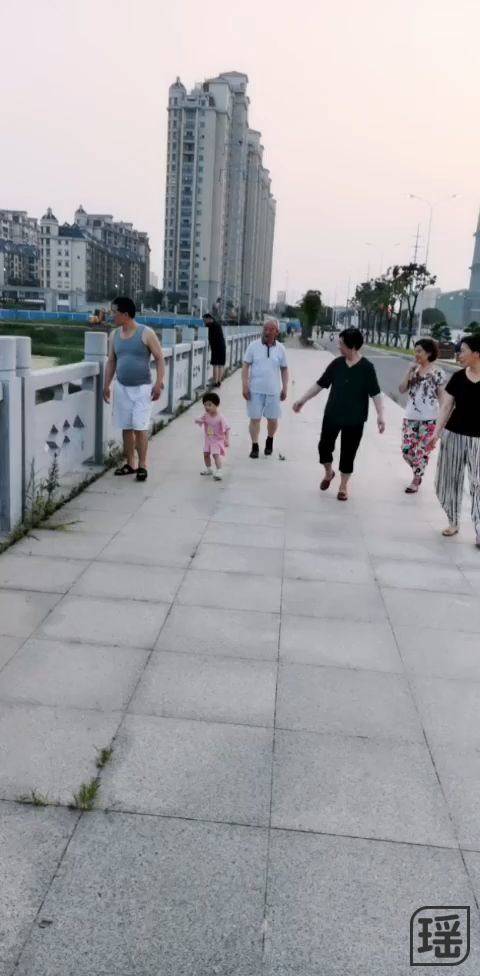 南京大姑父大姑妈来了,吃过晚饭全家陪瑶瑶散步。