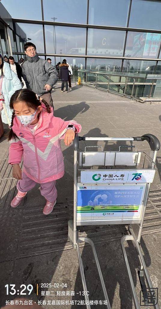 长春下飞机也是摆渡车,一下飞机感觉很冷。包车师傅是吉林市的,直接开车去世贸万锦大酒店。在酒店的电梯里也要臭美一下。
