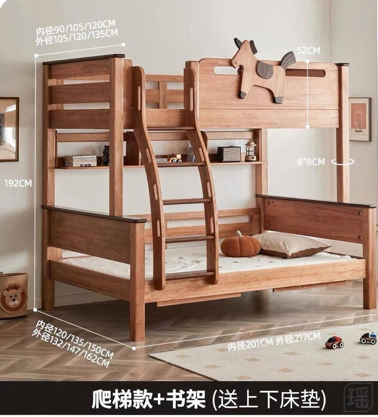 宝贝现在睡觉的床还是以前哥哥用过的,妈妈一直想给宝贝换一个新的。前几天我们一起选择了这种高低床。