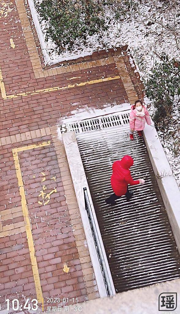 @妈妈陪宝贝楼下玩雪