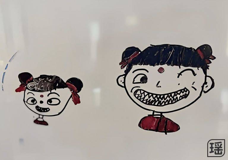 宝贝早晨起床上学前,在图板上随意画了哪吒的头像,