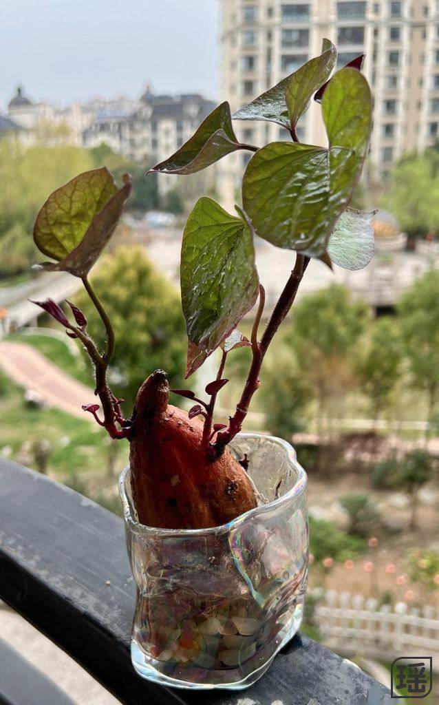 这段时间开始水培红薯。就是把红薯放在玻璃杯子里,用自来