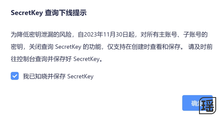 创建后必须当时记下,之后就不能查看key了。